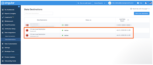 1. Go to https://app.singular.net/#/react/data-destinations