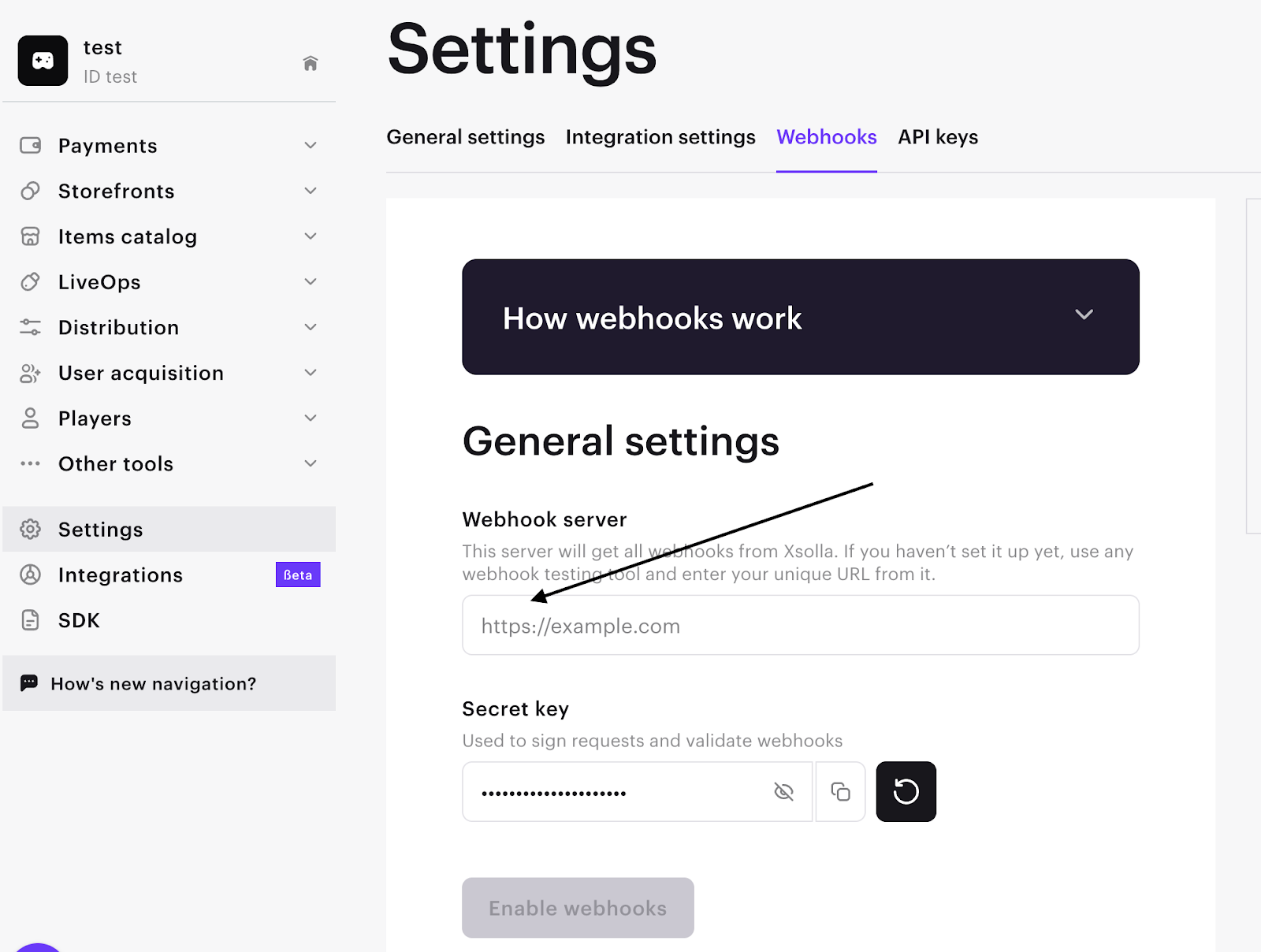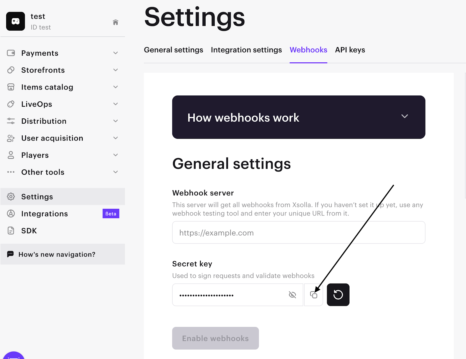 Step 1. Go to the Settings -> Webhooks